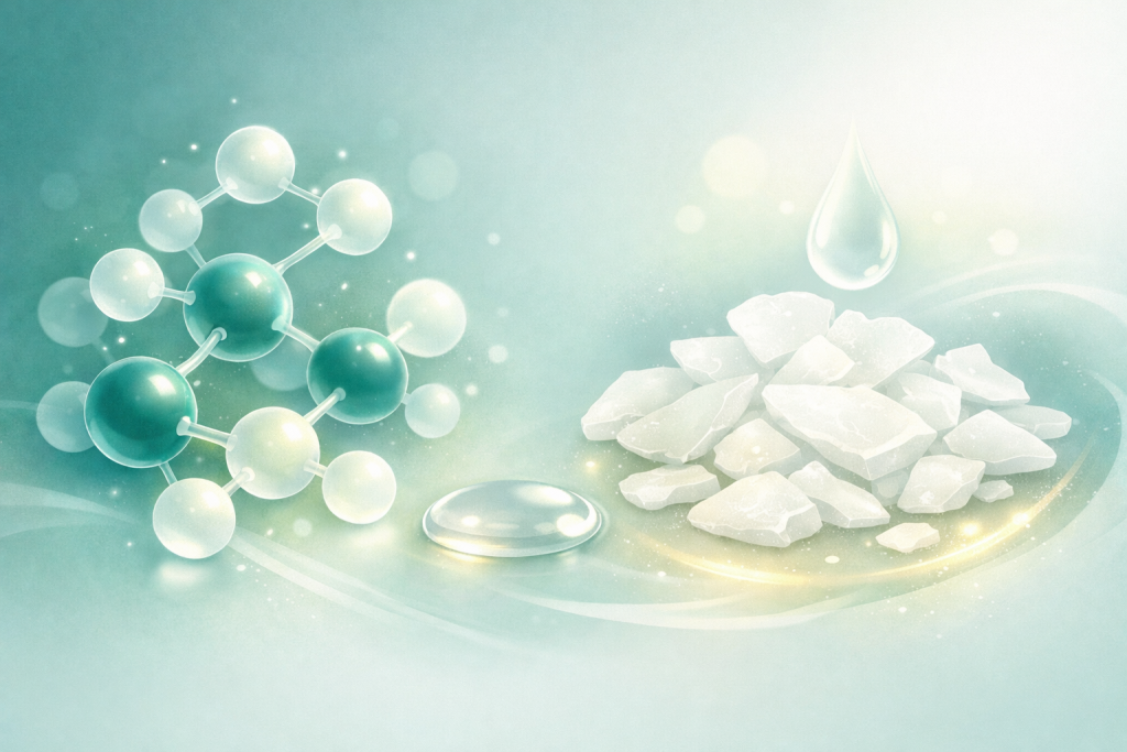 Cetyl alcohol is often misunderstood because of the word “alcohol.” Unlike drying alcohols, it belongs to the family of fatty alcohols—lipid-derived compounds known for their protective and softening properties. Widely used in dermatology and cosmetic science, it contributes to the smooth, velvety texture of creams while supporting the skin’s natural barrier.