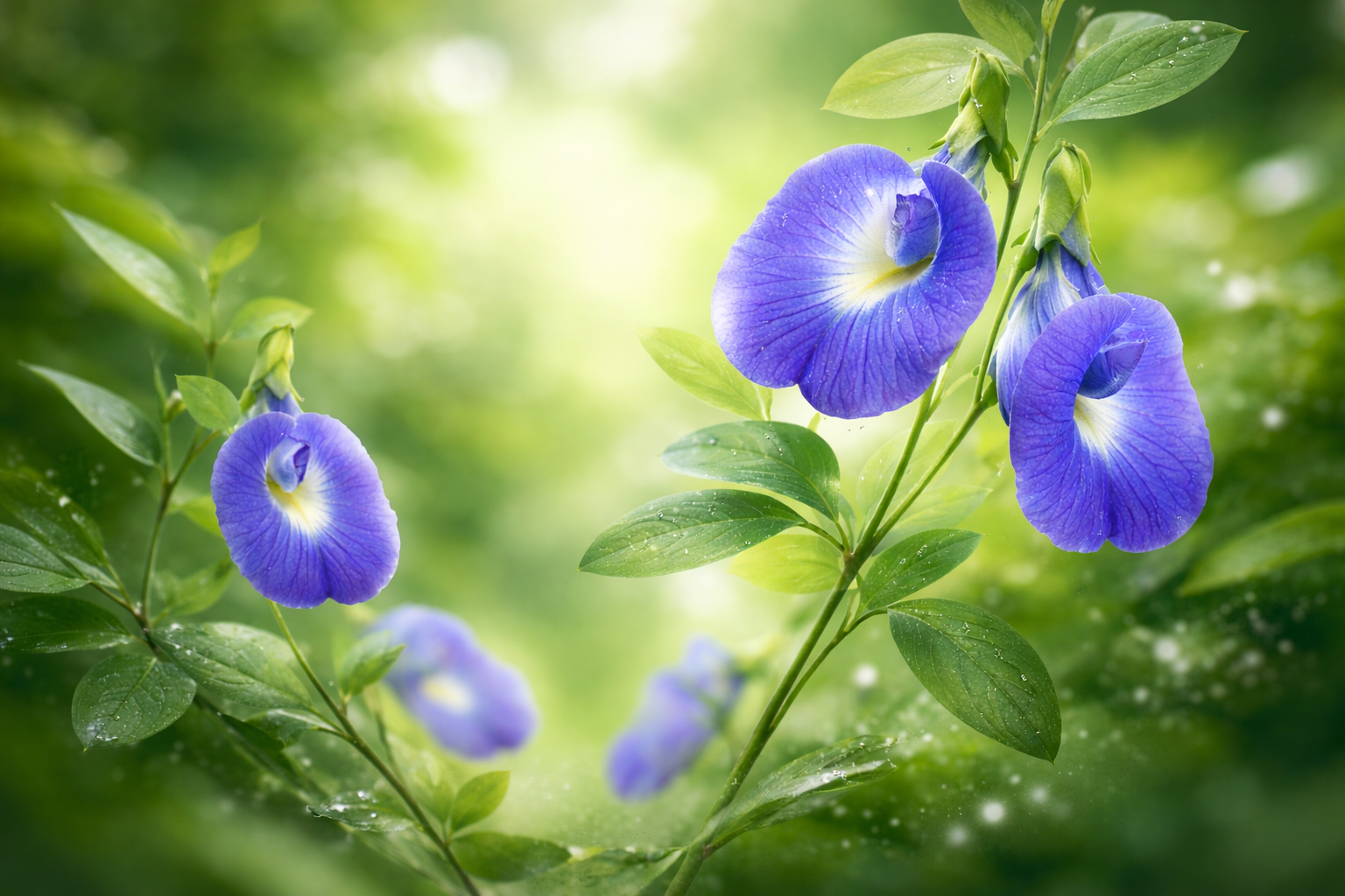 Its distinctive feature is its intense blue flowers, rich in specific anthocyanins called ternatins. These pigments are responsible for its vibrant color and antioxidant properties.