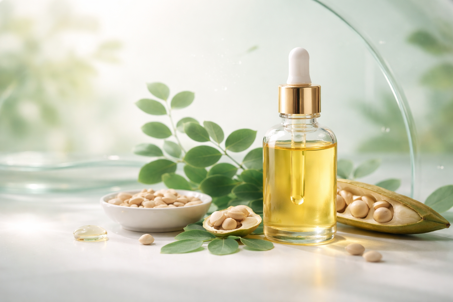 Moringa oleifera seed oil is part of a soothing approach to skin longevity. It can support the skin’s natural functions thanks to its rich lipid content and antioxidant potential. As it supports the skin barrier and helps to protect against oxidative stress, it also helps preserve cellular vitality and tissue balance. When incorporated into a consistent, physiology-friendly routine, it offers a gentle approach to long-term skin care.